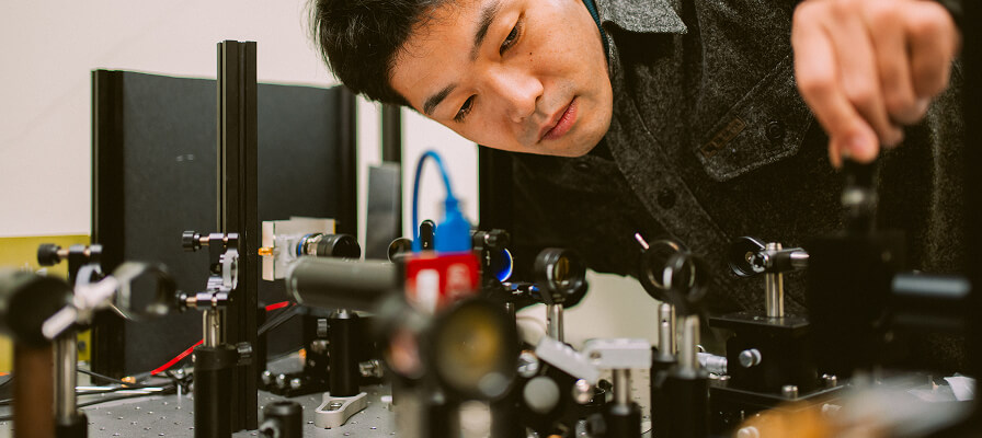 具体的な研究テーマとしては、量子コンピューティングの基本要素である量子ビットの集積化とコヒーレンス時間(情報の保持時間)の長期化があります。これは、デバイスの動作を安定させるためのダイヤモンド表面処理や、量子ビット間の相互作用を制御するナノ構造の設計といった、極めて高度な技術領域の確立に直結します。また、量子センサーとしては、微小な磁場や温度変化を高感度に検出するデバイスの開発に取り組んでおり、医療分野(生体磁気計測)や材料分析への応用実証を進めています。